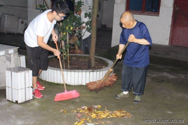7月11日上午5点40,志愿者们就起床迎接全新的一天。他们分工合作开展工作,采购、帮老人打扫敬老院卫生、到厨房帮助厨师爷爷做早饭,一切都进入正轨。简单地吃过早饭后,志愿者们开始了新的安排,陪老人聊天、帮老人洗衣服、为老人们演奏表演。临近中午,志愿者看到厨房的厨师爷爷很吃力地为敬老院爷爷们炒菜,便主动去帮助厨师爷爷,爷爷亲自教志愿者们如何在一个特大的锅中炒出可口的饭菜。