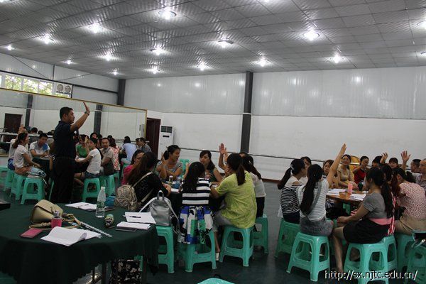 2016年7月12日下午,国培项目小学数学组的老师在第七舞蹈房进行集中培训,培训的主题是“TTT体验教育授课提升训练”,主讲人是陕西服装大学、西安交通大学、西北大学特聘体验教育师,人社部教育培训中心国家高级体验教育师的杨凤山老师。
