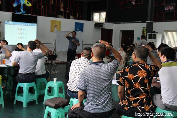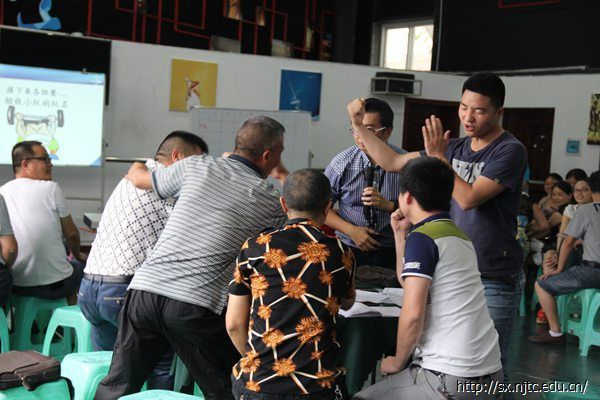 7月12日上午,毕业于台湾辅仁大学的资深培训讲师郭中立老师于三教第五舞蹈室给初中数学组的全体学员亲授了体验学习的教学手法,旨在通过本次学习提升老师们的课堂教学技巧。