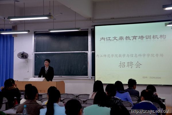 11月27日晚上7点,数学与信息科学公司2012级毕业生在五教南201参加了内江市文鼎教育培训机构招聘大会。