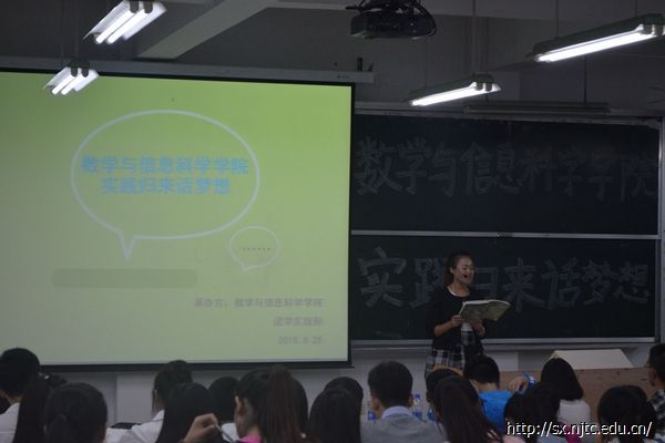 9月25号晚上7点整,数信公司于五教南101召开了“实践归来话梦想”的“三下乡”主题报告会。参加本次报告会的有学工办辅导员吴畏老师、校学团总支实践部部长童小东及其实践部成员、院主席团成员、院团学部分干事以及2015级部分班级。大会由体育部干事曹雨的主持。
