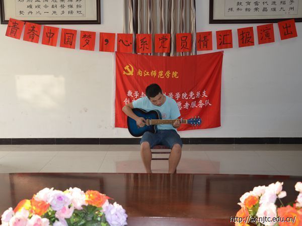 7月19日晚上7点整,“青春中国梦,心系党员情”志愿服务队三下乡文艺汇演在红色家园会议厅隆重举行。红色家园的老人们、负责人李晓清以及周围部分居民参加了本次活动。队员魏洁担任了此次活动的主持人。