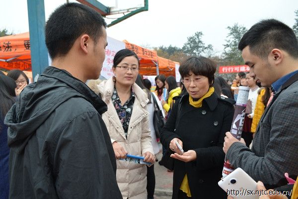 初冬的早晨带着丝丝寒意,但双选会现场却是人声鼎沸,接踵摩肩,热闹非凡。前来应聘的同学都拿着精心准备的个人简历,寻找与自己专业对口的相关企业单位。在招聘会的现场中,党总支书记唐再峰为同学们分析现场招聘单位的相对优劣处,她表示同学们要根据自己的专业来寻找相应的用人单位,同时强调同学们应该先锻炼,积累经验。党总支副书记张莲莲则强调同学们应该摆正自己的位置,明白自己的优劣势,一定要树立先就业再择业的观念。