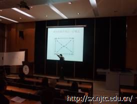 讲座伊始,赵思林教授以我国教育改革趋向研究性学习引出了讲座主题,和学员一起探究 “研究性教学”,构建了研究性教学“四点一心”模式。从而引出了对研究性教学“四点一心”模式的阐述,引导学员从阅读、问题、应用、总结四个点的角度切入,再用探究性的方式去分析,构成了以阅读为基础,问题为起点,探究为中心,总结为升华,应用为目的的“四点一心”模式。在应用方面赵教授认为并非每个问题都有探究价值,也并非每节课都适合探究教学。而探究可以看成2个过程,即探的过程和究的过程,亦即弄清是什么的过程和弄清为什么的过程。并围绕研究学习谈论了接受学习和合作学习之间的关系。