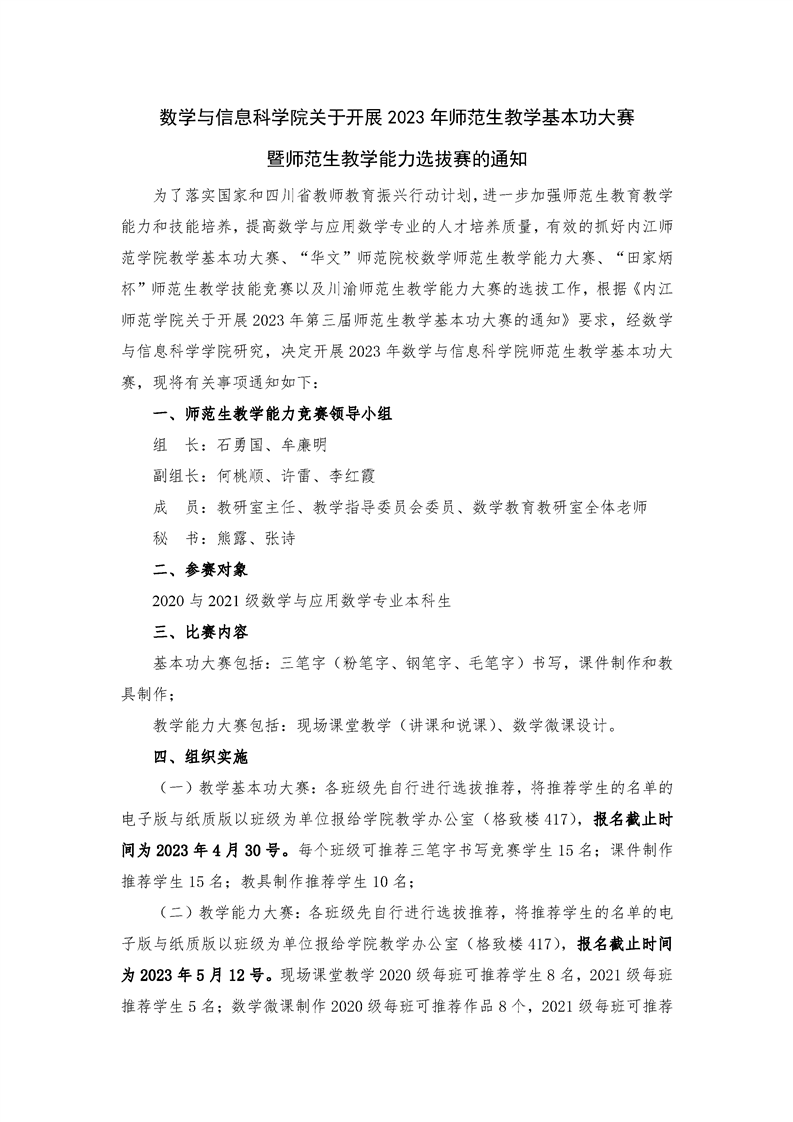 数学与信息科公司关于开展2023年师范生教学基本功大赛 暨师范生教学能力选拔赛的通知