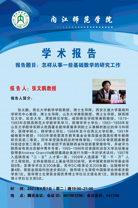 讲座地点:腾讯会议:会议ID:841961296;密码:641100
