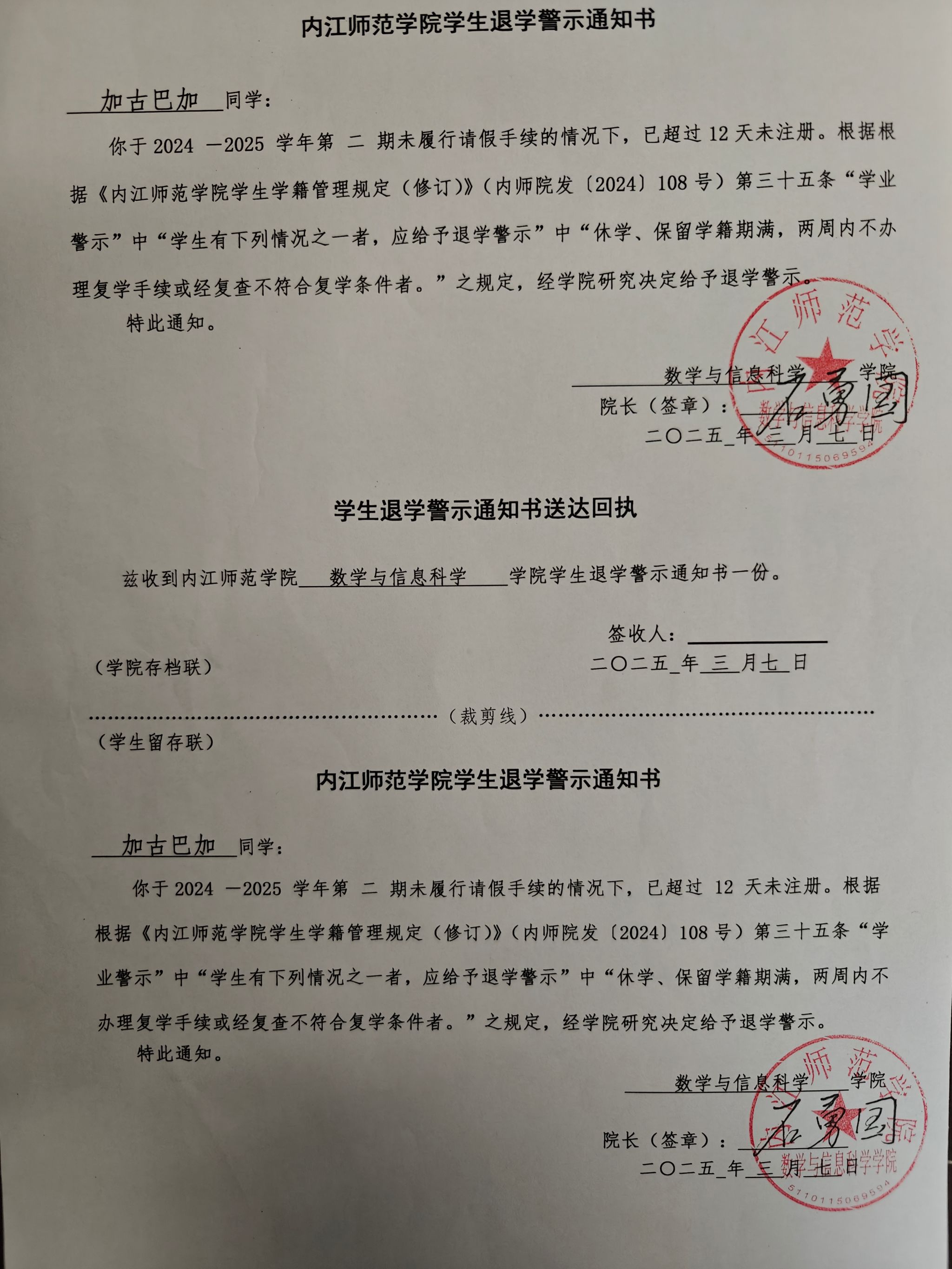 退学警示通知书